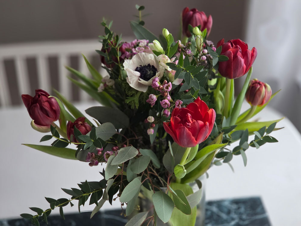 Familjen hade med sig en fin bukett.
