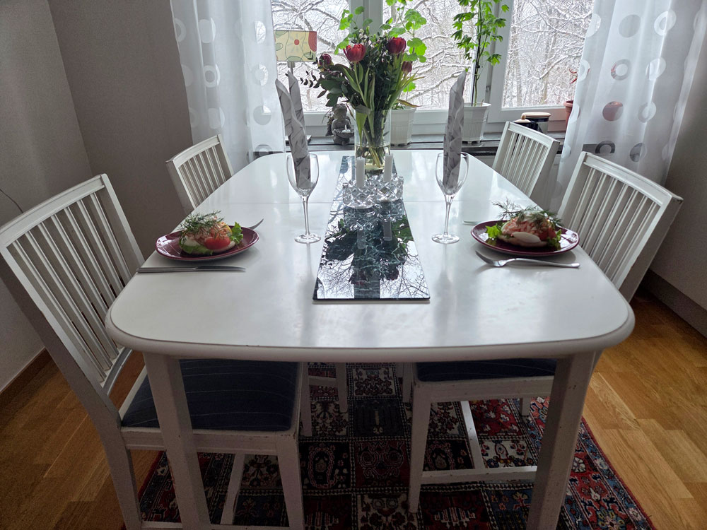 Lite då och då brukar jag äta lunch med en före detta arbetskamrat och numera granne. Den här gången var det min tur att bjuda igen och som vanligt åt vi räksmörgås som jag köpte från den lokala fiskaffären. Vi satt i flera timmar och pratade och vi hade mycket att diskutera. Både högt och lågt.