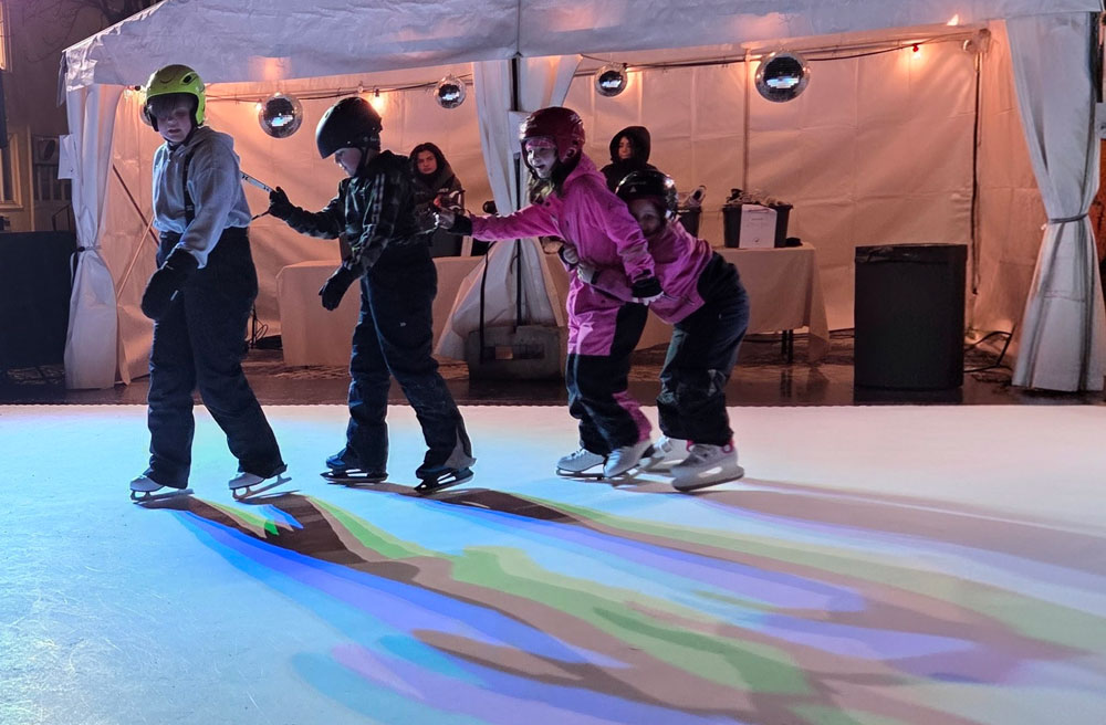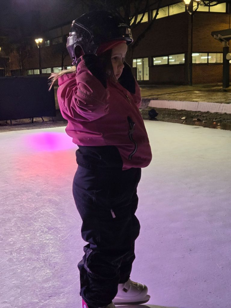 I mina hoods anordnade man skridskodisko för alla sportlovslediga elever. Just därför kom mina barnbarn på besök för att åka lite skridskor. Att det inte var ”äkta” is gjorde inte så mycket. De hade roligt ändå.
